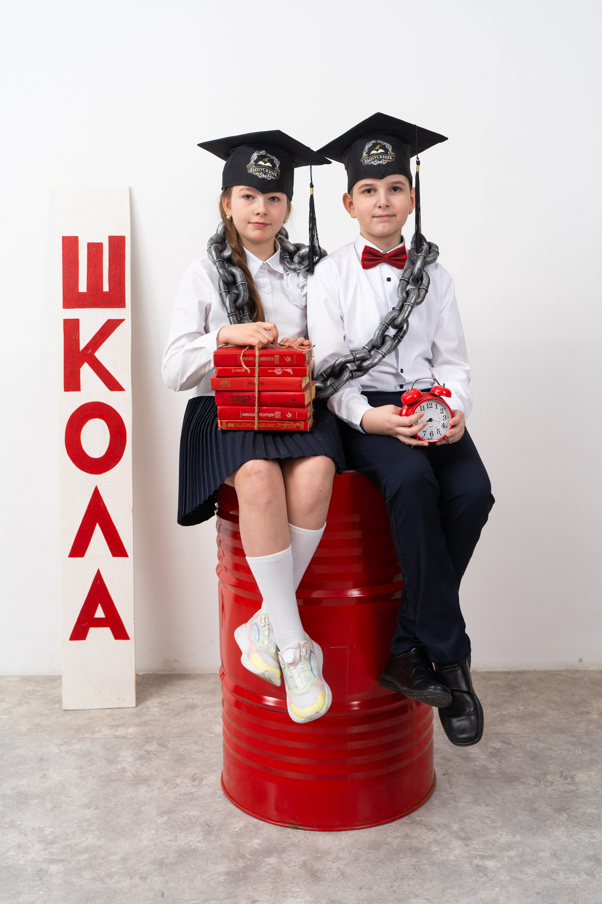 Напишите мне в любом мессенджере, назовите школу и класс, и я скину вам краткую презентацию, все расскажу и покажу, а потом мы подберем подходящую студию и назначим удобную дату съемки. С детьми обсудите одежду и стиль. Я могу подсказать идеи)