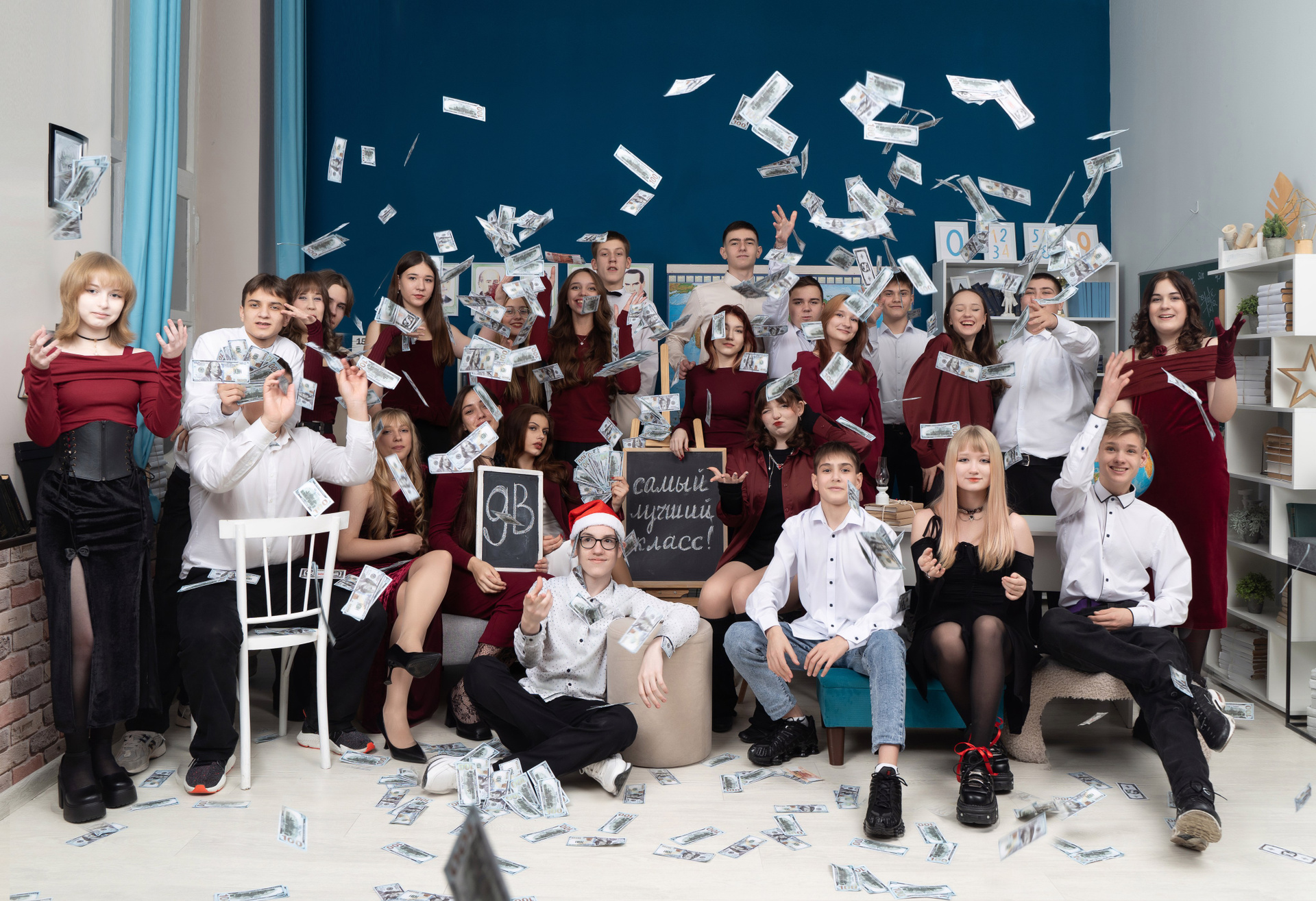 Минимум 18 если в студии. Если ваш класс меньше, напишите мне, я сделаю индивидуальный перерасчет. В школе можно фотографироваться от 10 человек.